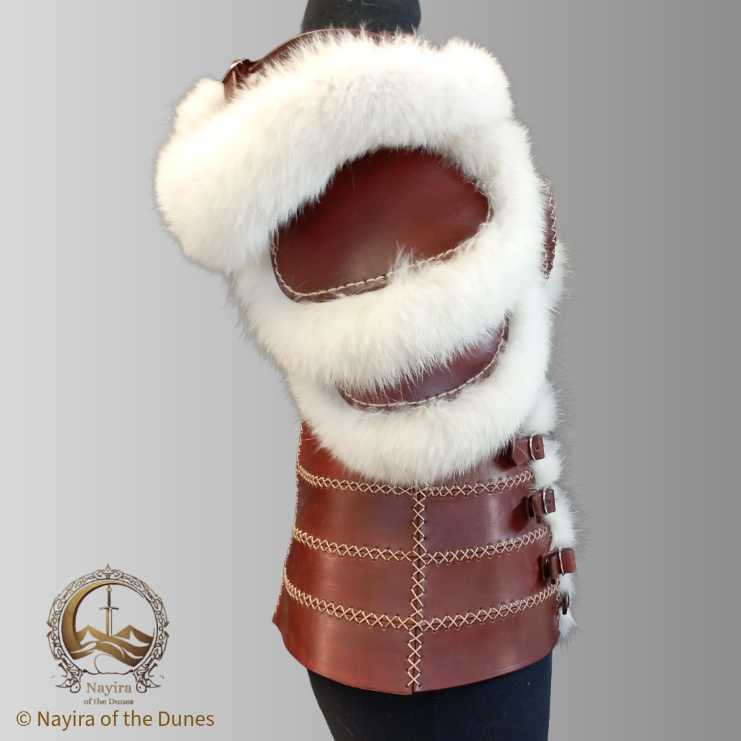 Designed as a functional armour piece, it can be worn on its own or combined with other elements to build a complete character.