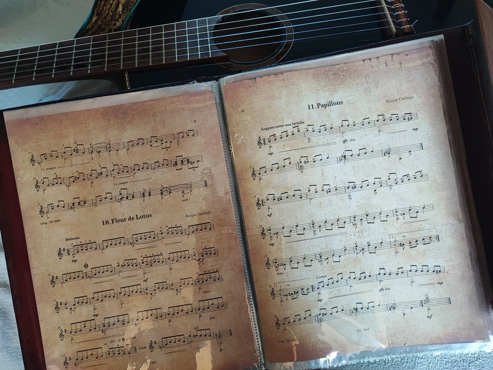 Inside, transparent sleeves protect sheet music while allowing quick access during play.