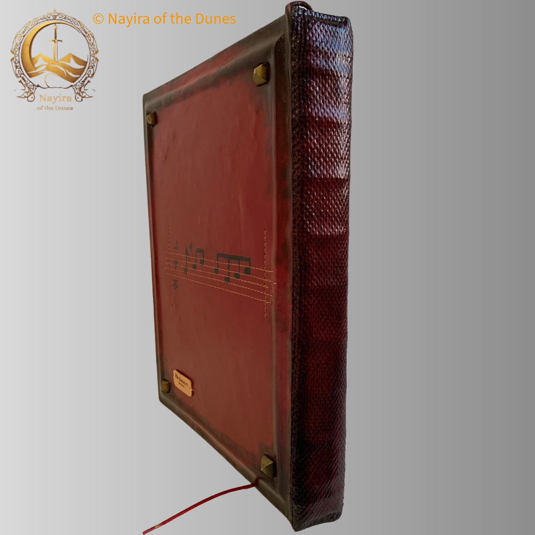 The spine is wrapped in genuine snakeskin for durability and texture.